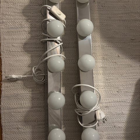 2 st vägglampor att sätta tex bredvid eller ovanför en sminkspegel. LED-lampor E14 ingår i köpet.