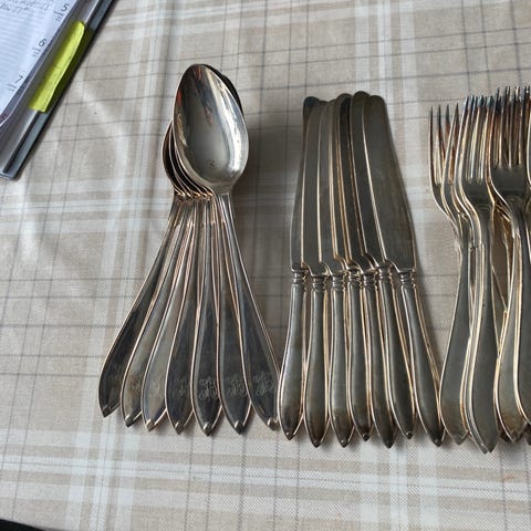 6 st Kaffeskedar i nysilver, från Arvidsjaur
