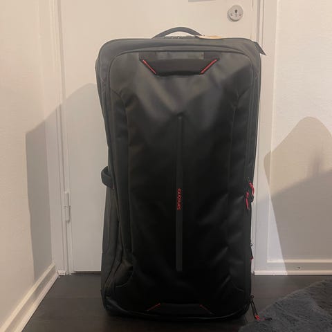 Mares Cruise Roller resväska i svart med draghandtag och hjul. Väskan har flera ytterfack med dragkedja och bärhandtag på ovansidan. Modellen är utformad som en stor rullväska, lämplig för att transportera exempelvis dykutrustning eller annan större packning. Robust konstruktion med förstärkt baksida och två hjul för enklare transport. Använd vid två dykresor. Inköpt ca 2014. Varit i förråd sedan 2015.