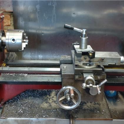 En oanvänd träsvarv med svarvlängd på 1000 mm och dubbhöjd 210 mm. Många anhåll och stor slipskiva medföljer. Några svarvstål
