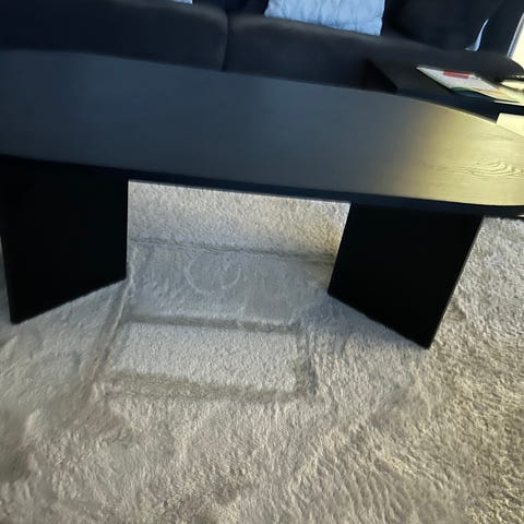 Soffbord i svart granit med rektangulär bordsskiva och rundade hörn. Bordet har en massiv skiva med blankpolerad yta och en stabil fot i matchande mörk färg. Passar som soffbord i vardagsrum och ger en tålig yta för vardaglig användning.