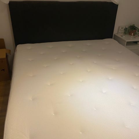 Mio Särö bäddmadrass i vit färg. Madrassen har ett vågformat quiltat överdrag och är märkt med Svanen. Passar som extra komfortlager ovanpå säng eller resårmadrass. Tvättråd och skötselinformation finns angivna på etiketten vid hörnet av madrassen.
