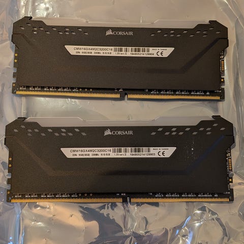 Corsair Vengeance RAM-minne för stationär dator. DDR4-moduler med svart kylfläns, levereras som två separata minnesstickor enligt bilderna. Passar moderkort som stödjer DDR3-minne. Lämpligt för uppgradering av stationär dator där denna minnestyp efterfrågas.