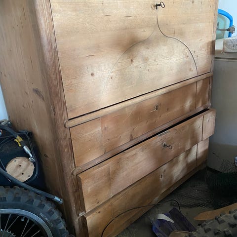 Fin gammal chiffonjé med många lådor i olika storlek. Vill man stänga luckan behöver låset fixas, i övrigt är chiffonjé i fint begagnat skick.