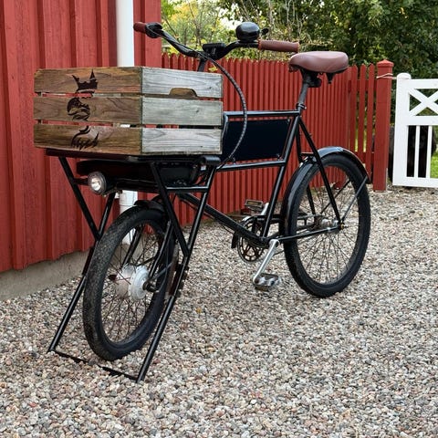Detta är en stabil och praktisk elcykel med rymlig låda framtill – idealisk för barn, packning eller annat du behöver transportera på ett smidigt och klimatsmart sätt.