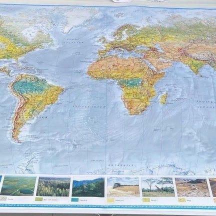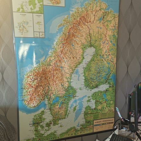 Fin och maffig skolkarta! Har en del små skavanker, se bilder. Mått: 220 x 170 cm. Kan hämtas i Fruängen, södra Stockholm, eller tas till Norrköping/Linköping eller Örnsköldsvik med viss fördröjning.