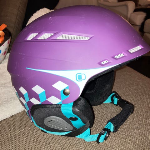 K2 Stash skid- och snowboardhjälm i storlek medium, anpassad för huvudomkrets 55–59 cm. Hjälmen har ett hårt ytterskal i orange färg med svart kant och detaljer. Ventilationsöppningar finns upptill och baktill för luftflöde. Invändigt finns vadderade öron- och sidopartier samt justerbart hakband för passform. Lämplig för alpin skidåkning och snowboardåkning.