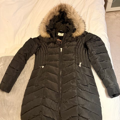 Hollister vinterjacka för dam i storlek 42. Jackan är svart och tillverkad i polyester. Modellen är vadderad med horisontella kanaler och har huva med fuskpäls. Fram finns dragkedja och sidofickor med dragkedja. Passar som varm ytterjacka under kallare årstid.