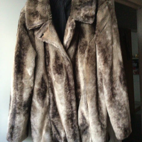 Outwear collection ytterjacka/fake päls för dam i storlek XL. Jackan är svart och tillverkad i polyester. Modellen är längre och har ett mjukt, pälsliknande yttertyg. Passar som ytterplagg under svalare årstider. Alla synliga delar, inklusive foder, är i polyester enligt tvättråden på plagget.