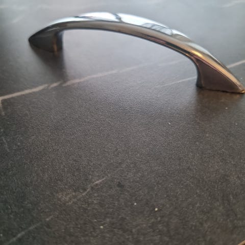 32 st Handtag i metall i silverfärg. Bågat utförande med två fästpunkter och medföljande skruvar. Lämpligt för montering på till exempel köksluckor, lådor eller skåp där ett greppvänligt handtag önskas.