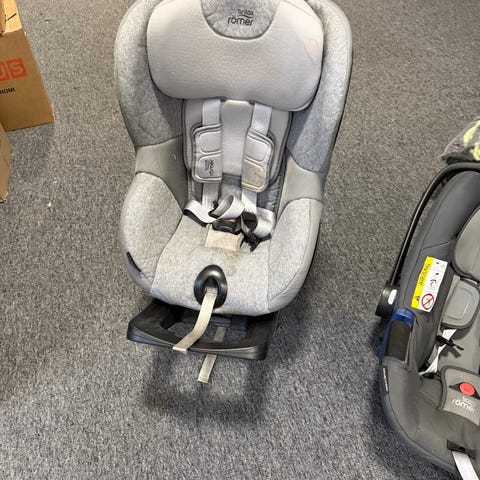 Britax Römer Bilbarnstol 15-36 kg. Köpt 2022. Färgen är grå med röda detaljer. Materialet är anpassat för komfort och säkerhet.