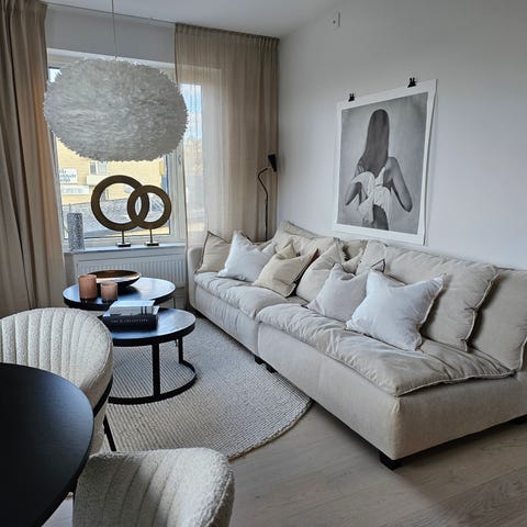 Beige soffa från Mio med avtagbart och tvättbart tyg.