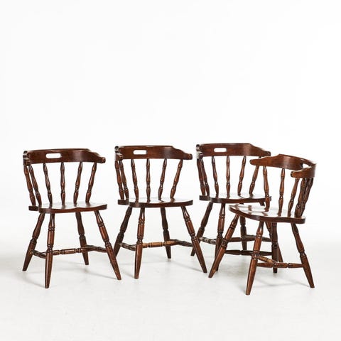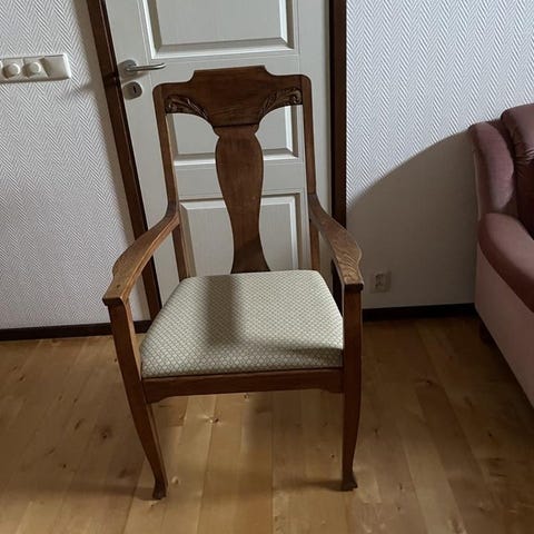 Leksandsstolar 5 st, förmodligen sent 1800-tal. Olika färger med lagningar, delvis ostadiga.