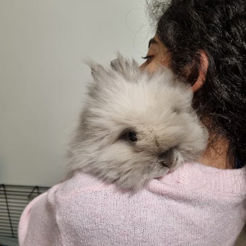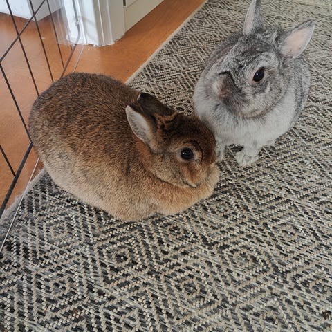 Två söta kaniner; Hermelin och Lejonhuvad. Cookie- en hona, 2 år, kastrerad och Ferdinand - en hane som är 5,5 år. De trivs verkligen bra ihop och säljs därför som ett par.