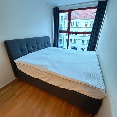 Två 90 sängar med tillhörande dubbelmadrass.