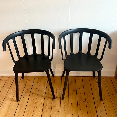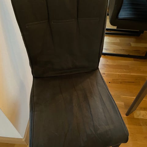 8st stolar i svart färg, och plast, väldigt lättskötta stolar pga avtorkning kan ske enkelt