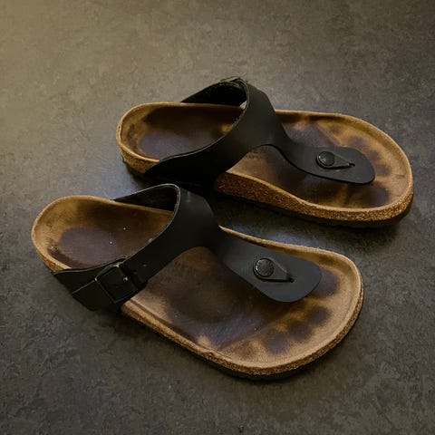 Birkenstock sandaler i storlek 37. Modellen har två justerbara remmar med spännen och en fotbädd med formad sula. Färg svart med ljus innersula. Passar som vardagssandal både inomhus och utomhus.