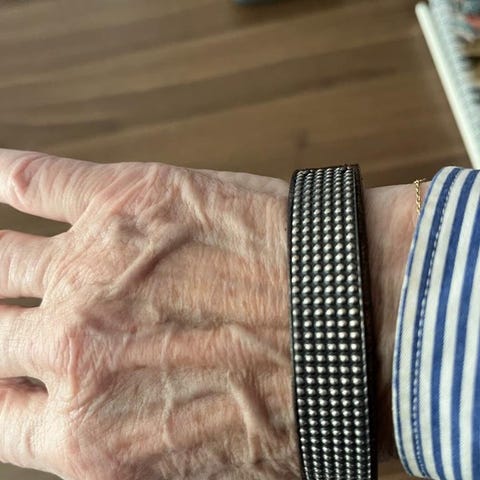 Begie blommor med rostig orangebrun bakgrund, armband i läder eller läderliknande manschettstil!