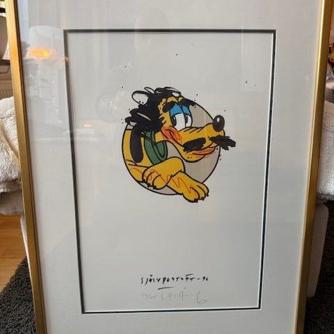 Unik Lasse Åberglitografi med abstrakt motiv i svart, vitt och rött. Verket är signerat och numrerat. Tavlan är inramad med glas och en tunn ram. Passar som väggkonst i exempelvis vardagsrum, hall eller kontor.