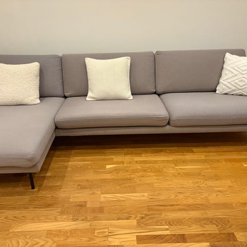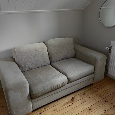 Säljer en tresitssoffa från Mio i mycket gott skick. Soffmodellen heter Romance och har en ljus vit/beige färh med ben i ek. Soffan köptes ny vid inflytt 2022 och säljes nu p.g.a. köp av en divansoffa.