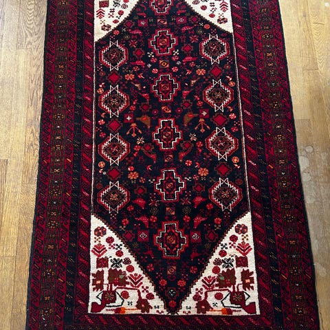 Mycket fin matta, märkt Iran. Passar fint i vardagsrum eller liknande. Halvlång lugg.