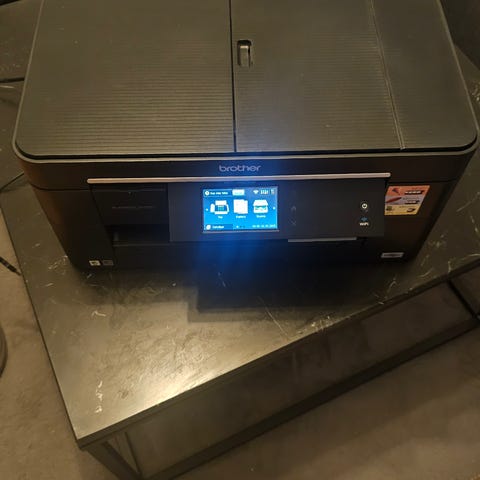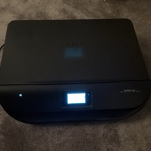HP multifunktionsskrivare i svartvit design. Enheten har dokumentmatare upptill och frontmatad pappersfack. Skrivaren är avsedd för utskrift, kopiering och även skanning. Passar för hemmabruk eller mindre kontor där man behöver en kompakt allt-i-ett-skrivare för dokumenthantering.