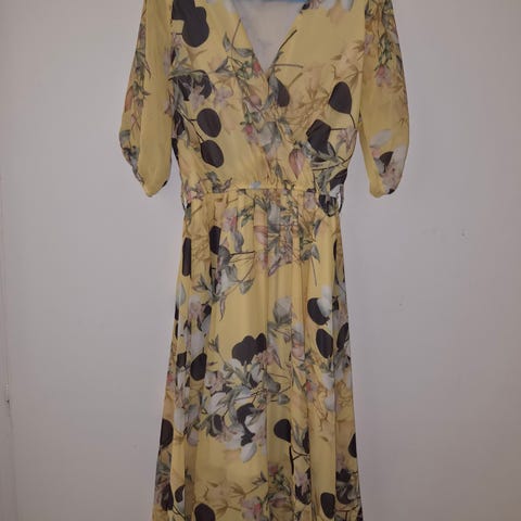 Klänning i lila nyanser, och dödskallar i mönstret. Snörning i ryggen. 2xl i storlek. Insydd i bysten, men enkelt att ta bort igen om det behövs. Kan skickas mot porto. Betalning via swish