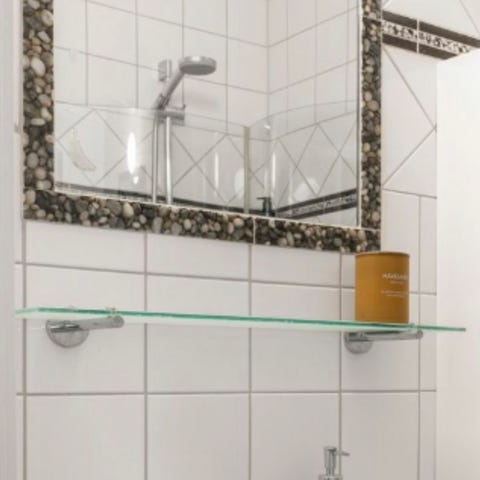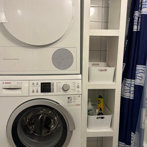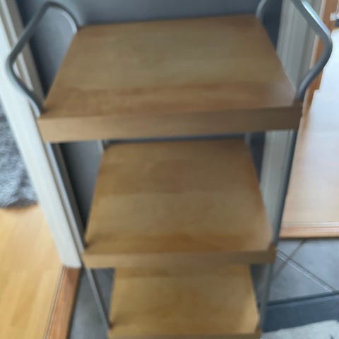 Säljer en smal hylla med skåp och glashyllor. Kan användas i badrum eller i annan typ av möblering.