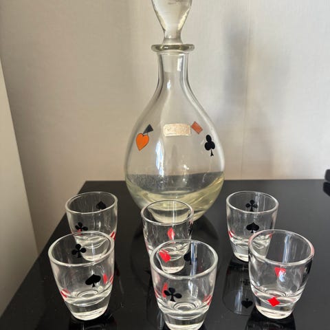 karaff och glas med hjärtmotiv glas