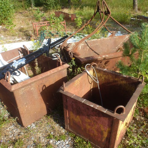 Två nedtagna tallar sågade till 4 stockar. 4-6 m långa.