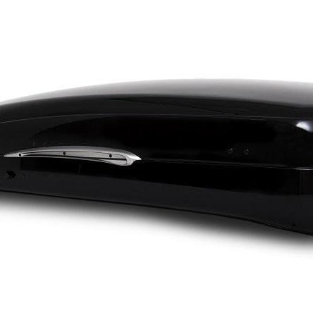 Calix Urban Loader takbox i svart utförande. Takboxen är av hårdplast med låg profil och är avsedd för montering på takräcken. Passar för extra lastutrymme på personbil. Två aluminiumfärgade takräcken medföljer på bilderna, avsedda för montering av takboxen på bilens tak.