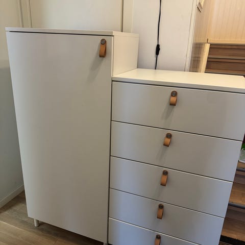 Garderob från Ikea, småstad/ platsa. Använd 1 år, knopparna är avtagbara så inga hål på fronterna.