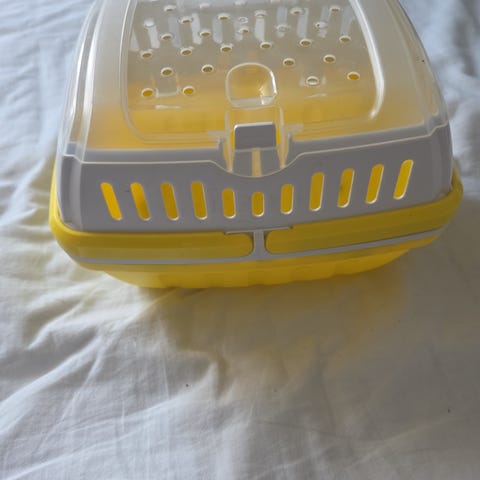 Transportbur i plast. Passar för mindre husdjur som till exempel hamster vid snabbare transporter till veterinär eller liknande, ska ej användas under längre tid eller till större djur som kaniner eller marsvin.