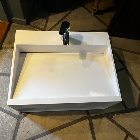 Snygg och praktisk uppåtgående kant i bakkant av handfatet, vilket hindrar vatten från att rinna ner på väggen.