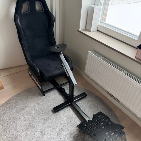 Playseat Oracle Red Bull Racing Esports racingsäte i svart med gula detaljer. Sätet är utformat som en racingstol med hög rygg, sidostöd och genomföringar för bälten. Det är monterat på en stabil stomme med fäste för ratt- och pedalställning, avsett för racingspel och simulatorer. Klädseln har Oracle Red Bull Racing Esports-grafik och logotyper på ryggstöd och sidor. Passar för användning tillsammans med spelkonsol eller PC i hemmamiljö.