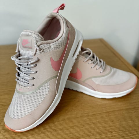 Nike Air Presto-sneakers i en ljusbrun/beige färg med rosa detaljer. Jätte fina skor, nypris cirka 1500-2000kr om inte mer, aldrig använda