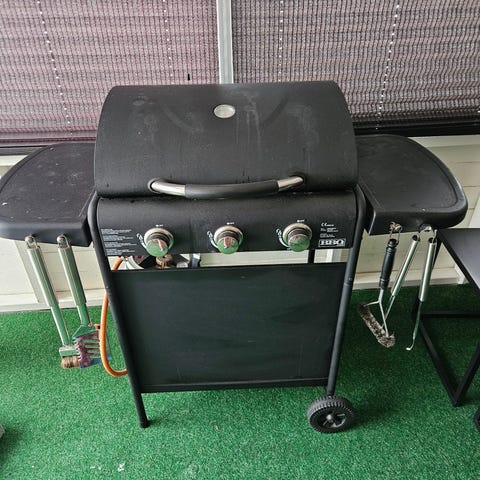 3 lågig gasolgrill inkl. gasoltube i bra skick. Allt fungerar på grillen.