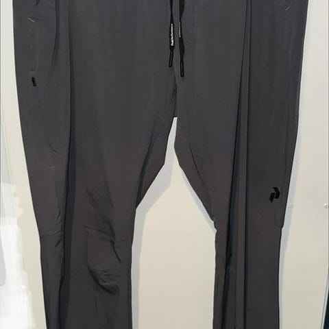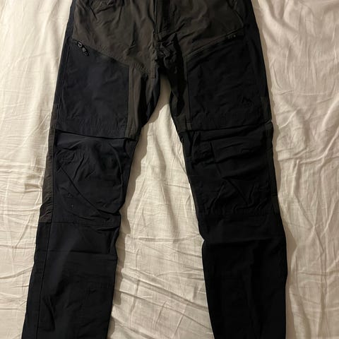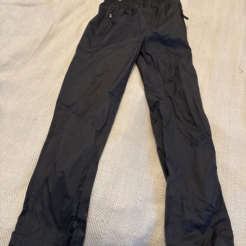 H&M Slim Fit byxor för herr i storlek M. Byxorna är svarta och tillverkade i polyester. Modellen har resår i midjan med dragsko och flera fickor, inklusive benfickor med lock. Passformen är slim fit och materialet är lätt och tunt, lämpligt för vardagsbruk eller avslappnade tillfällen.