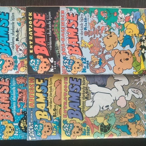 Två av ryggarna har en reva upptill (nr 4 & 11) och en framsida har varit vikt (nr 11). I övrigt fint skick. Nr 7 har en affisch kvar inuti.
