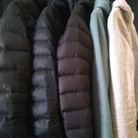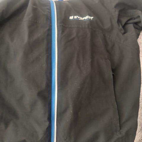 Everest-Jackan har fast huva (enligt bild), hel dragkedja framtill och vadderad insida. Flera fickor framtill med dragkedja.