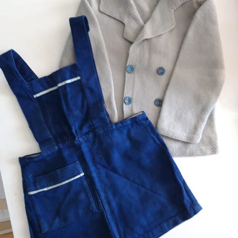 Byxa Längd 57cm från ök axelband till fot.Tröja Längd 34cm,Axelbredd 20cm.