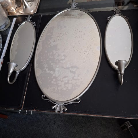 Kruka från Svensk Tekn inkl fat, Väggdekoration med kaninhuvud, 4 djupa skålar från Åhléns, Spegel från H&M Home, Bokstöd i sten från H&M Home, Vägghängare från H&M Home, Vas i stengods H&M Home, Väggdekoration i keramik i ljus beige färg. Nypriset på allt hade varit över 4000:- mitt pris 950:/
