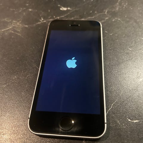 Apple iPhone mobiltelefon med 64 GB intern lagring. Enheten har pekskärm och hemknapp på framsidan. Färg: vit med ljus framsida. Medföljande laddkabel syns på bilden. Lämplig för vardaglig användning som samtal, meddelanden, surf och appar beroende på installerat operativsystem och stöd för mobilnät hos operatör.