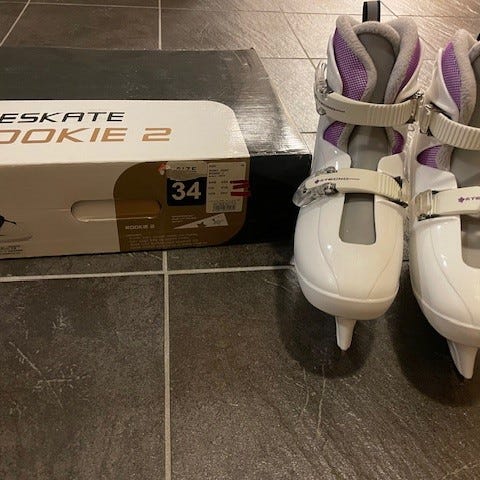 Säljer nästan nya skridskor då barnen växte ur dem väldigt snabbt.
