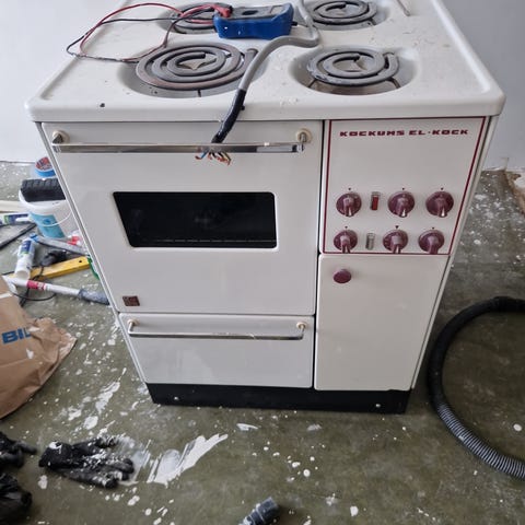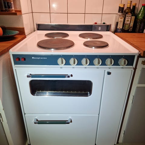 Fungerande spis, ca 1970, eller tidigare. Främre lilla plattan fungerar inte.