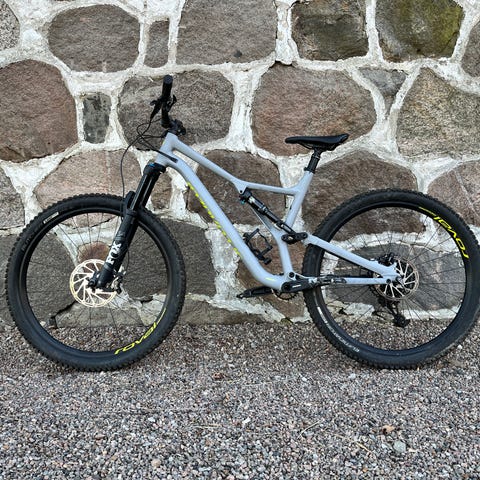 Jag gjorde en stor service via Sportson i Kalmar inför den här (förra säsongen), tror det var i mars/april 2025, men får inse att det inte blir någon cykling på den nivån jag skulle vilja. Har inte lyckats hitta kvittot men vet att de fixade bromsarna i tillägg till det som ingick i kontrollen. Testcyklade den nu innan jag lägger upp annonsen och sen känns precis sådär härligt lätt/snabb som man vill att en XC-cykel ska vara. Kolfiberram och därför riktigt snabb på stigarna.