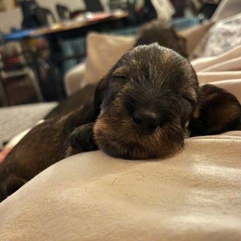 Båda föräldrarna är Viltspårschampions och är duktiga att apportera samt har en fin både in och utsida. Valparna är uppfödda i köket så vana det mesta i ett hem.