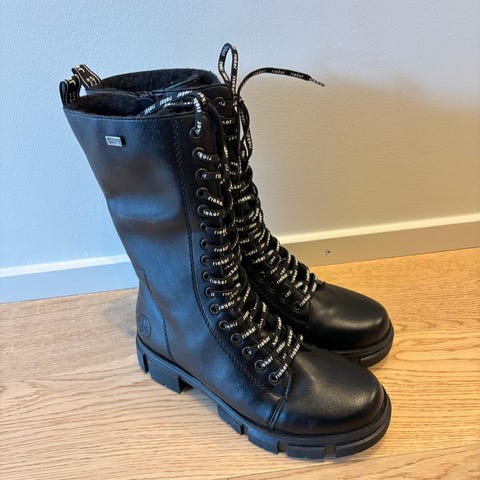 Damstövel skinn varmfodrade nya. Storlek 37. Lite bredare över tåna. Svarta. Köpta i no på lilla vinkelsko. Nypris 1200 no kr. Säljes för 600 sv kr.