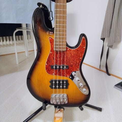 En mycket fin USA Fender Jazz bas. Årsmodell 1996. Sitter nästan nya Flats strängar på nu. Kommer i ett välbevarat Fender original hard case. Upphämtning eller skickas som Blocket paket. Mvh Conny.