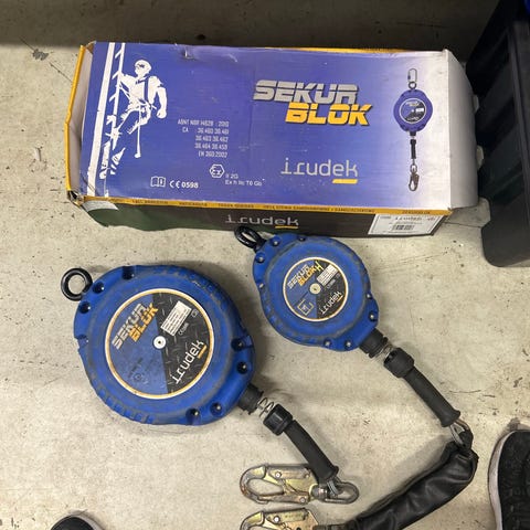 2 fallskyddsblock (ett med vajer och ett med lina) Falcon och Honeywell